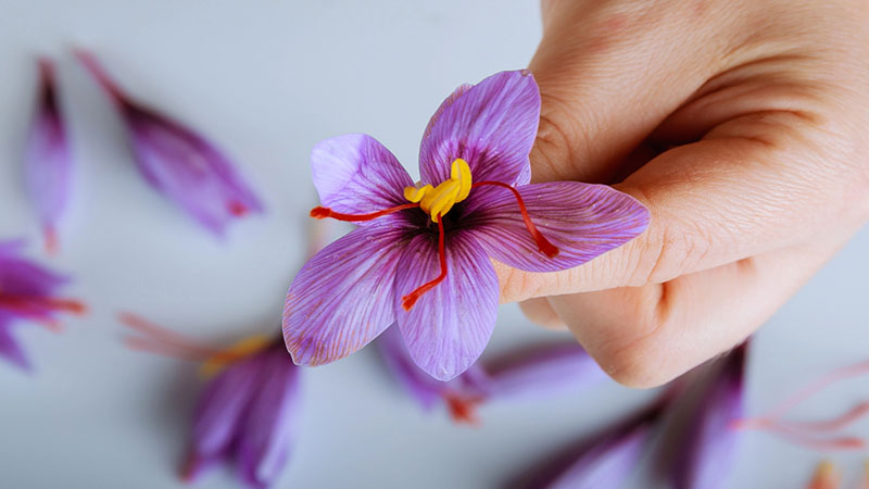 الزعفران، واحدًا من أغلى أنواع التوابل الشهيرة عالميًّا، عبارة عن خيوط رقيقة حمراء اللون ذات رائحة مميّزة ومذاق مر وحار قليلًا تُجمع من زهرة الزعفران البنفسجية.