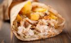 الشاورما عبارة عن قطع رقيقة من اللحم ، مثل الدجاج ، ولحم البقر ، والماعز ، والضأن ، وأحيانًا الديك الرومي الملفوف في قطعة كبيرة من الخبز المسطح أو خبز البيتا المطبوخ على البخار.